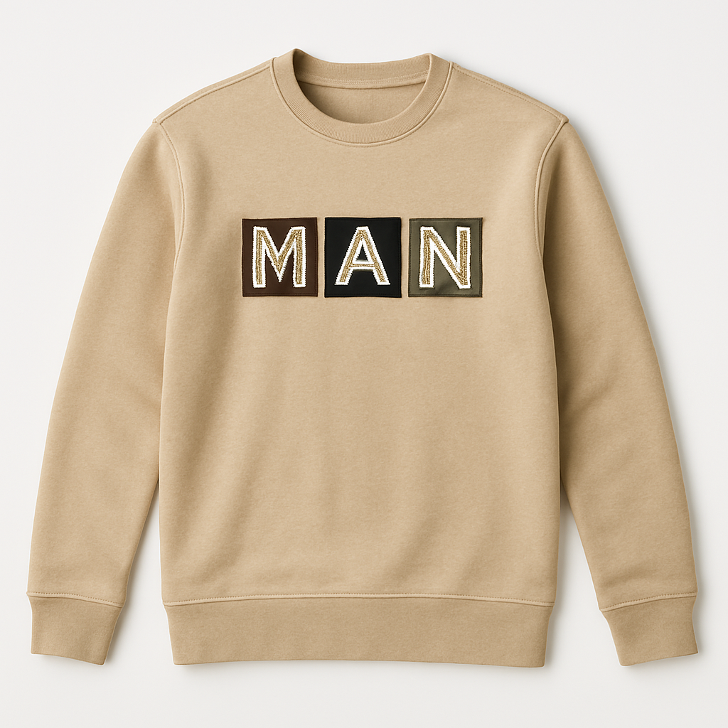 Men’s Premium “MAN” Patchwork T-Shirt – Beige Edition